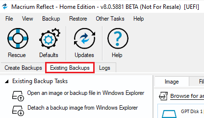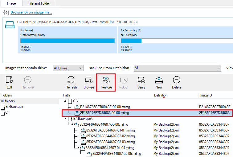 可供恢复的备份映像显示在主窗格中。