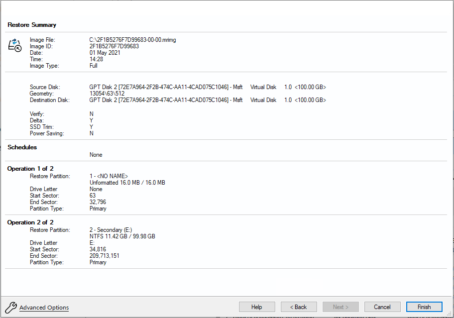 如果映像仅包含数据,则使用 Macrium Reflect 恢复它非常简单。您可以将其恢复到其原始位置而无需中断操作系统。
