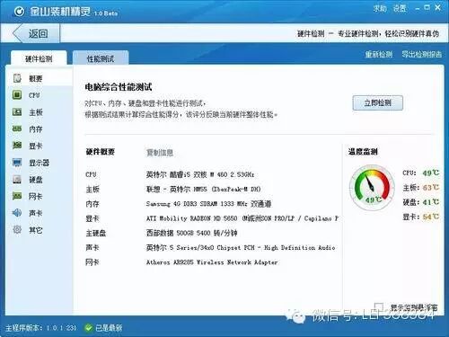 ⑵.然后切换到“硬件检测”功能,自动帮你检测当前计算机的硬件设备详细信息以及当前硬件当前温度是多少,当您的硬件温度达到危险值,温度数字颜色会变得越来越红。